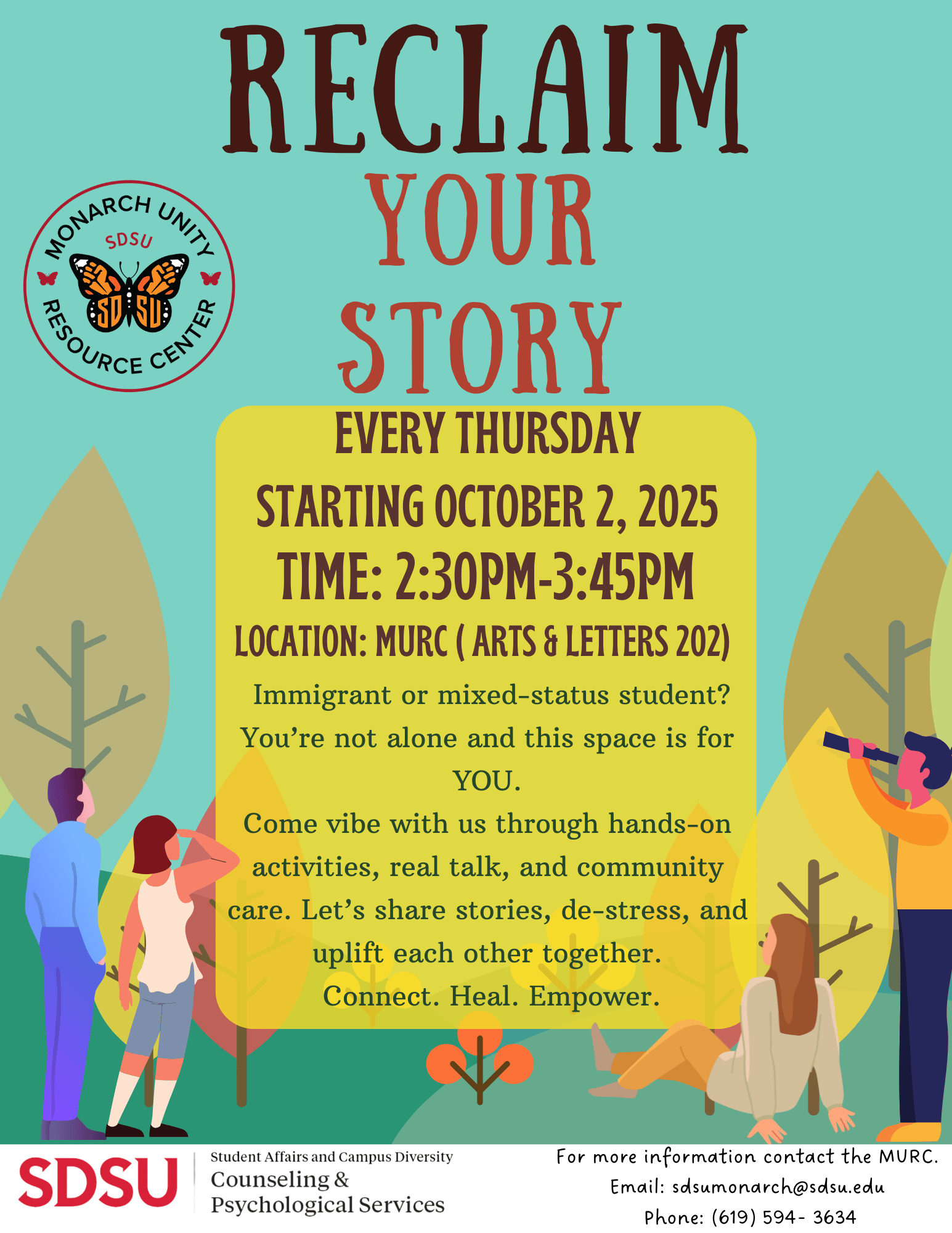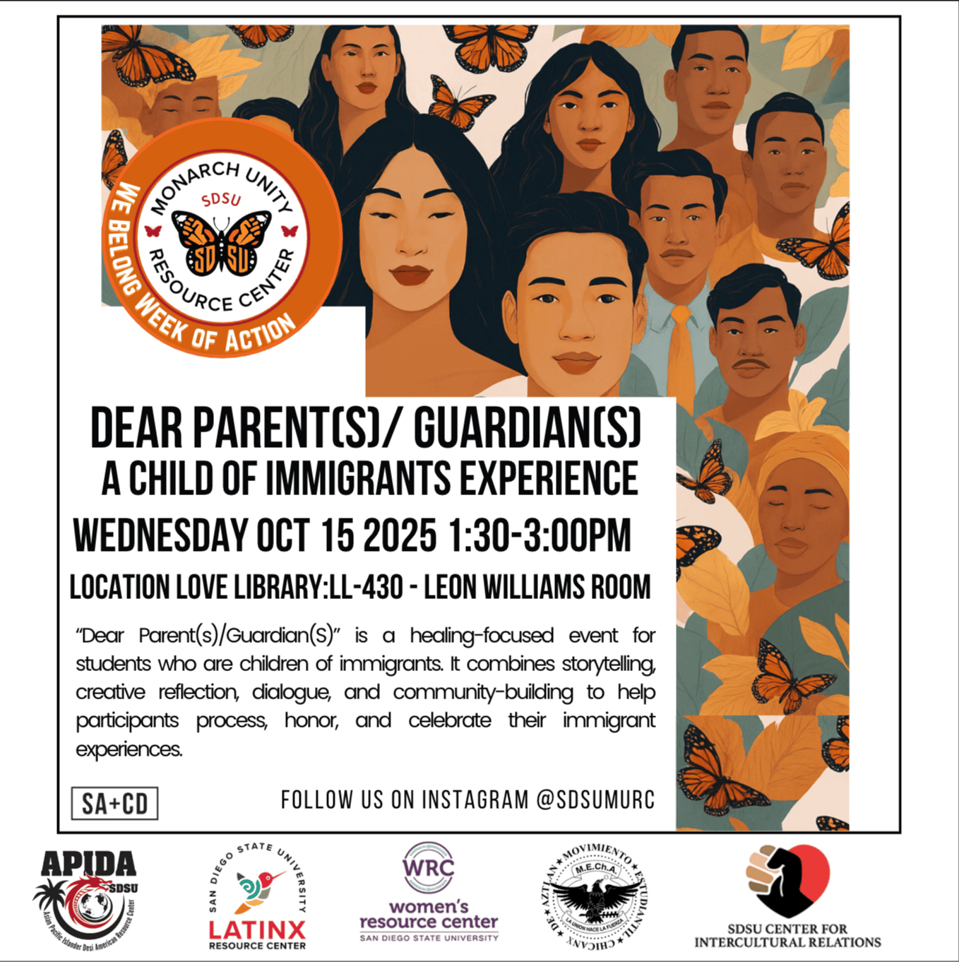 We’re are the MURC your go-to hub for support, celebration, and solidarity. Founded from a legacy of student activism, we serve SDSU’s immigrant, undocumented, and mixed-status communities with compassion and strength.